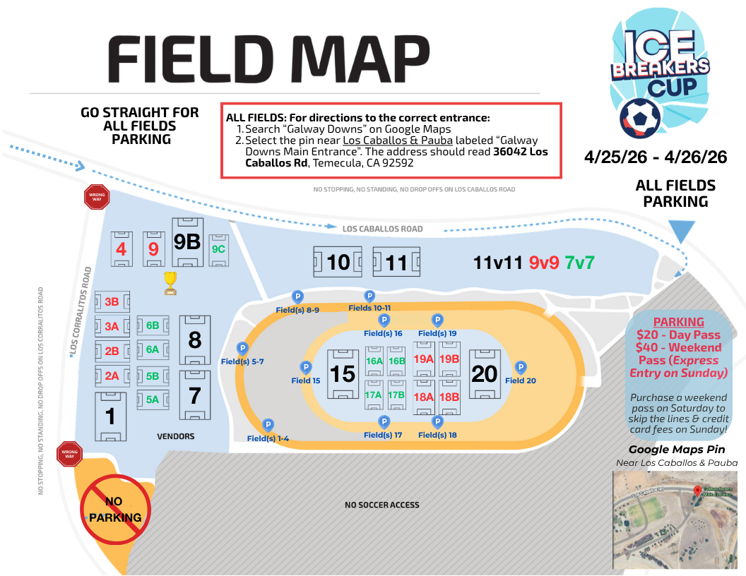 All games will be played at the Galway Downs Soccer Complex.